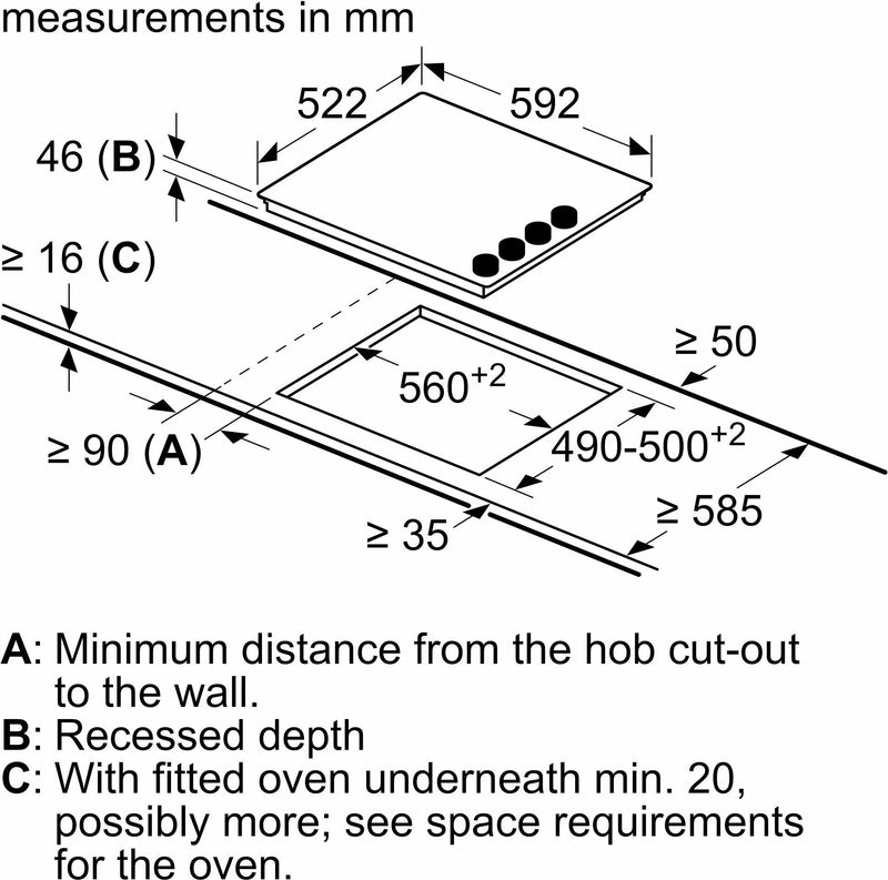 - Cavity Dimensions (h w d): 46 mm x 560 mm x 490 - 500 mm