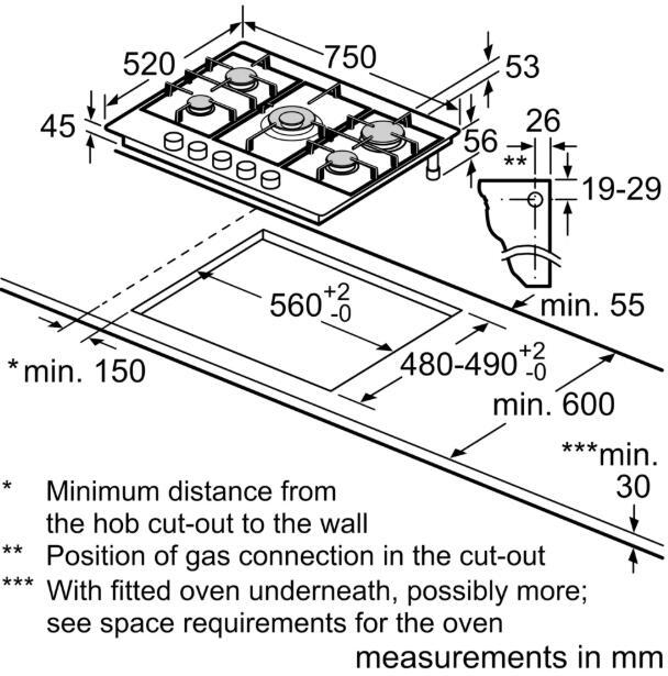 - Installation Requirements (hwd): 45 x 560 x 480 - 490 mm