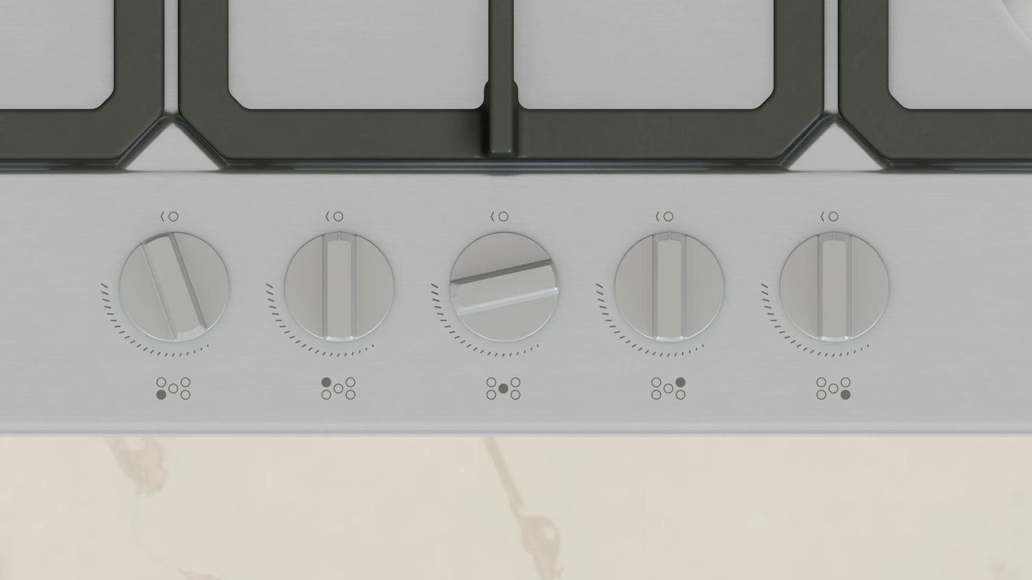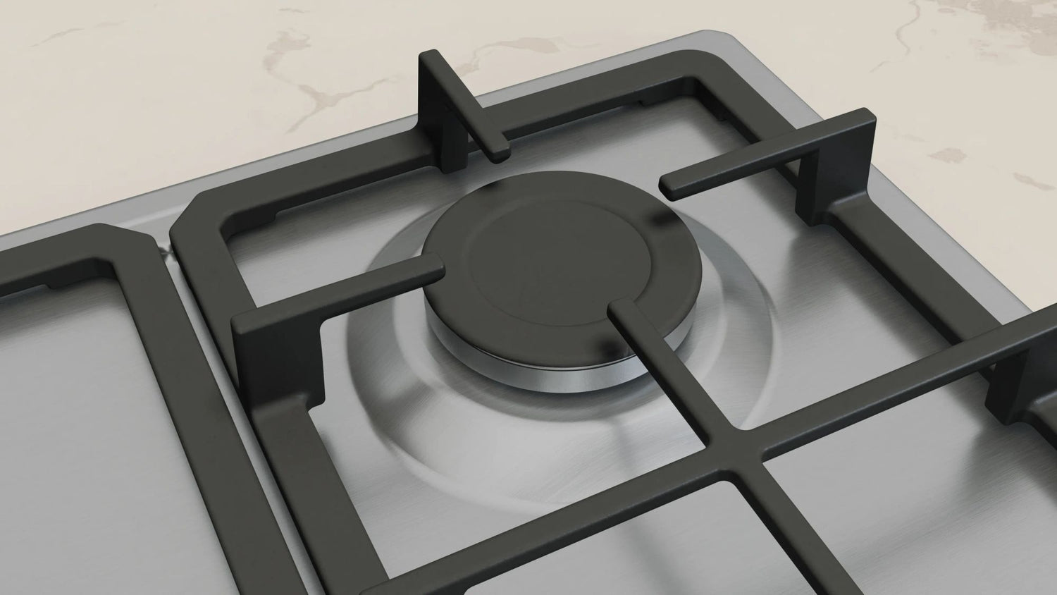 Crafted with durable black cast iron pan supports featuring protective rubber feet, the hob provides a stable and professional-grade surface for all your cookware. The frameless stainless steel base adds a clean, seamless look that fits effortlessly into any kitchen aesthetic. Sword-style rotary knobs are positioned at the front for intuitive control and are designed to complement Neff’s signature design language, offering a tactile and refined experience.