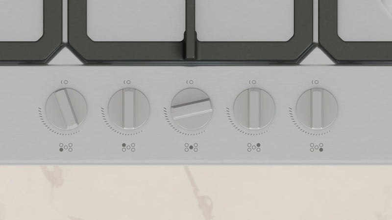 The Neff T27GKQ8N0 gas hob combines sleek stainless steel design with powerful performance across five cooking zones, including a high-powered wok burner. At 75cm wide, it offers generous space and flexibility for all your culinary needs. Featuring durable cast iron pan supports, flame failure safety, and easy-to-use front rotary controls, this hob is both safe and stylish. With automatic ignition, LPG compatibility (nozzle set included), and biomethane readiness, it suits a range of modern kitchens. The frameless finish and signature Neff sword dials add a premium touch to this versatile, high-quality appliance.