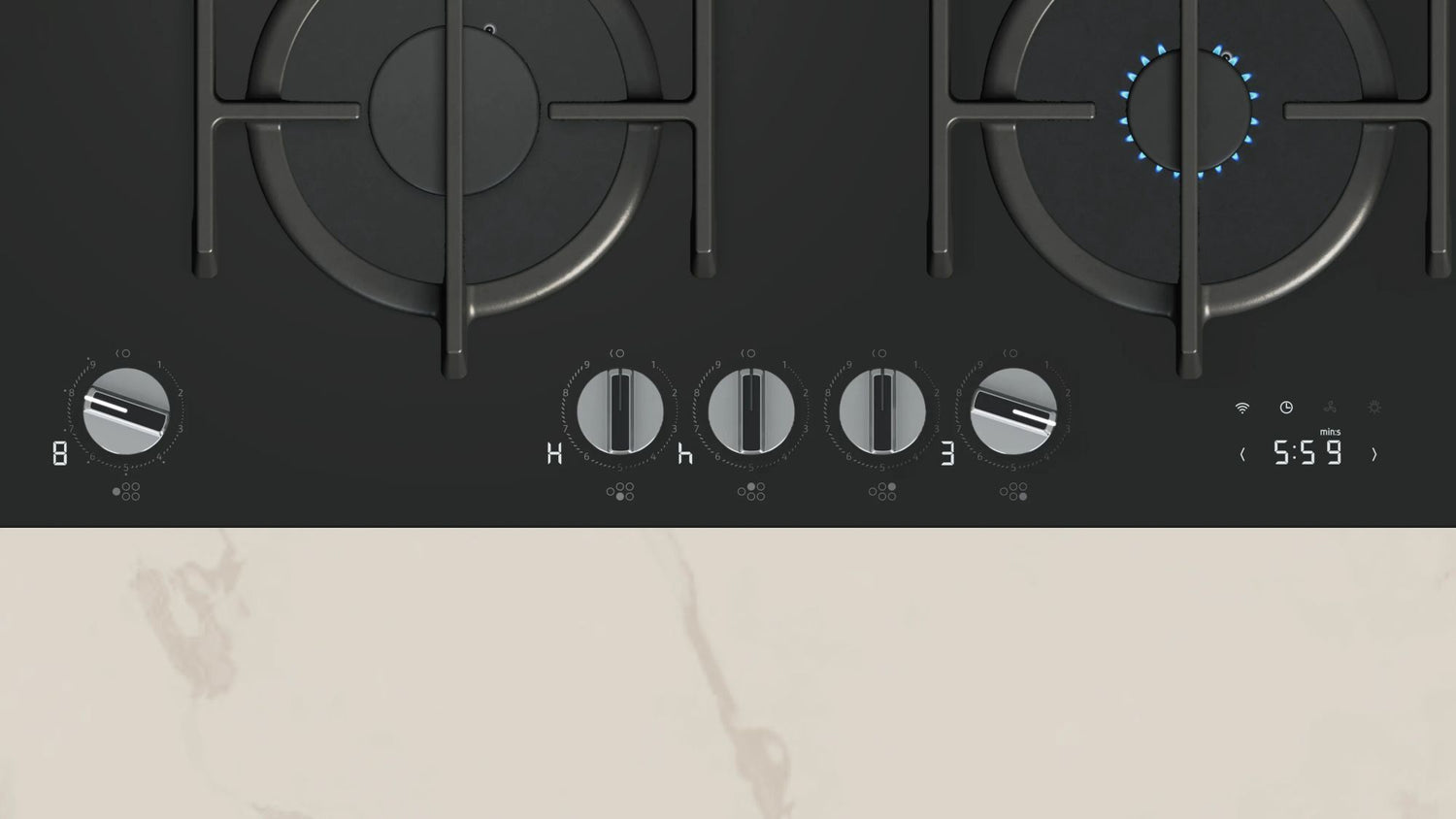User interaction is intuitive and stylish thanks to Neff’s signature illuminated metallic sword knobs located at the front centre of the hob. These provide precise flame control and feature integrated ignition for ease of use. FlameSelect technology offers nine flame levels, enabling accurate heat adjustment to match the specific needs of each dish, thereby enhancing cooking precision and energy efficiency.
