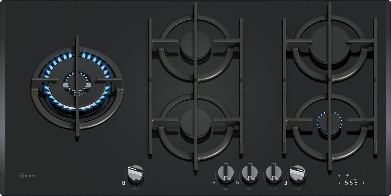 In summary, the Neff T29RHS4S0 gas hob blends performance, convenience and cutting-edge design. Its high-power burners, precise flame control and integrated smart features make it a standout appliance for those who value functionality without compromising on style. Whether preparing a simple family meal or a multi-course feast, this hob is equipped to deliver reliable results with ease and sophistication. It represents the perfect balance of German engineering, smart connectivity and contemporary aesthetics.