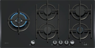 Neff N90 90cm Wide Gas Hob - Black Tempered Glass / Bevelled sides