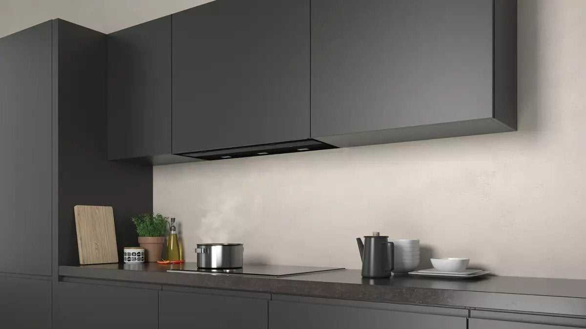 This Neff N70 integrated hood has three speeds and an intensive power level, resulting in a maximum extraction rate of 749m3/h. The three LED lights on this hood will help illuminate the hob below, so you can clearly see what you’re cooking. This hood is operated by touch control to adjust the extraction rate and lighting.