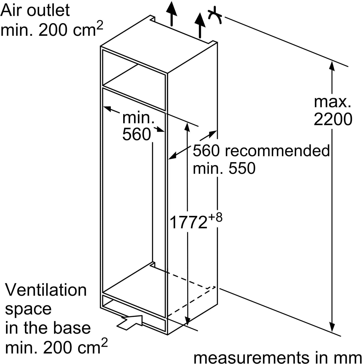 - Installation Requirements (hwd): 1775 x 560 x 550 mm