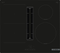 The Neff N50 Venting Hob combines elegant design with advanced functionality. This 60cm black glass hob features four induction cooking zones, including two flexible zones, for versatile cooking. It offers precise touch control, a built-in extractor with nine speeds and a booster level, efficiently removing cooking vapours at rates up to 622 m³/h. Notable for its Flex Induction technology and hob-hood connectivity, it ensures convenience and safety with features like automatic pan detection and a residual heat indicator. Its sleek, frameless design with red LED displays enhances any modern kitchen. The Neff N50, coded V56NBS1L0, is an epitome of innovative cooking technology.