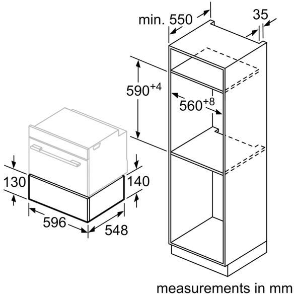- Niche dimension (hxwxd): 140 mm x 560 mm - 568 mm x 550 mm