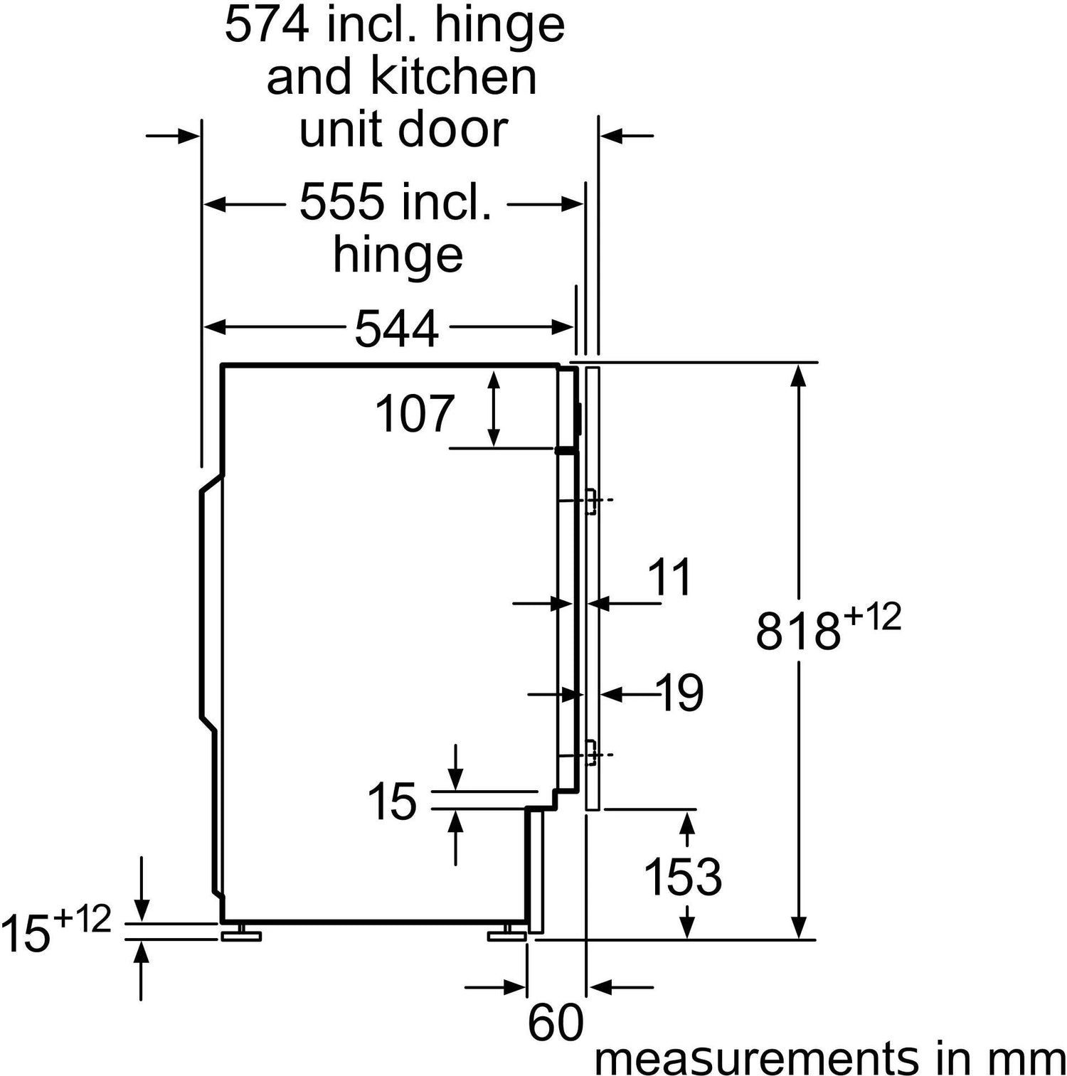 - Maximum Closed Door Depth (Excluding Pipework): 57.4 cm