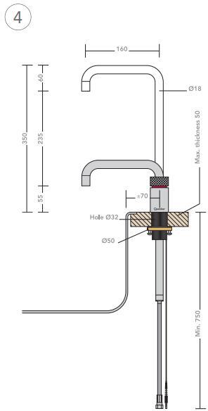 - Tap Arrangement: Single Square Boiling Hot Water Tap