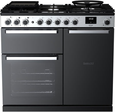 Rangemaster Edge Deluxe 100cm Wide Dual Fuel Range Cooker - Black / Chrome