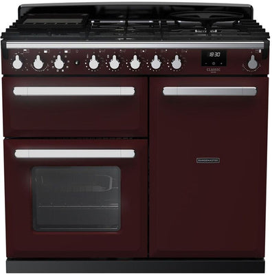 Rangemaster Estel Deluxe 100cm Wide Dual Fuel Range Cooker - Bordeaux / Chrome