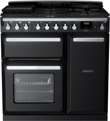In summary, the Rangemaster Estel Deluxe 90cm Wide Dual Fuel Range Cooker ESDL90DFPGBL-CM1 is a perfect blend of form and function, expertly crafted to elevate your cooking experience.