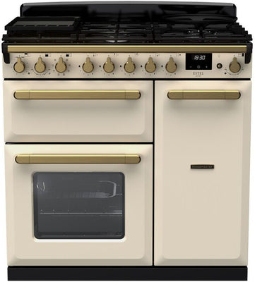Rangemaster Estel Deluxe 90cm Wide Dual Fuel Range Cooker - Pale Cream / Antique Brass