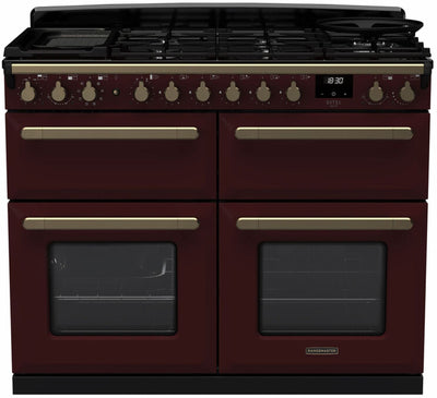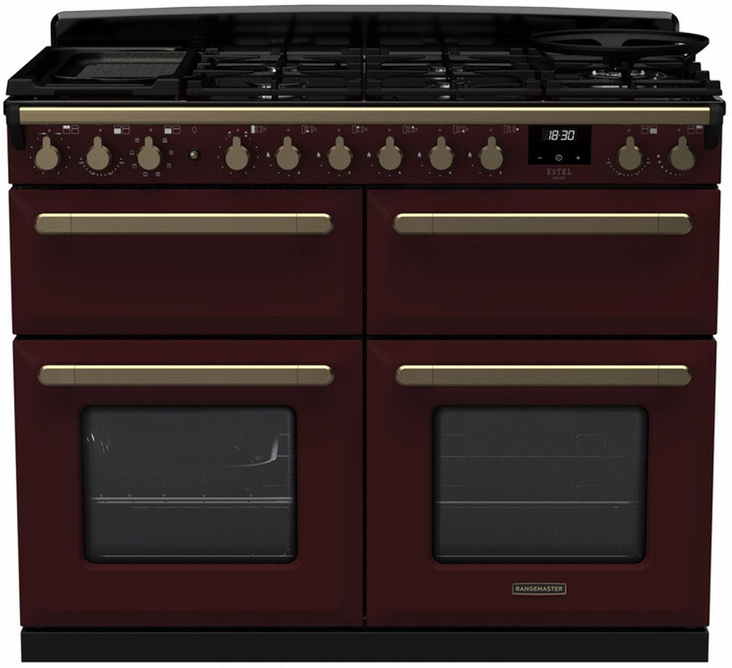 Rangemaster Estel Deluxe BC 110cm Wide Dual Fuel Range Cooker - Bordeaux / Antique Brass