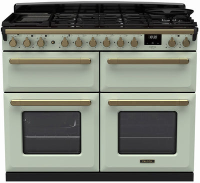 Rangemaster Estel Deluxe BC 110cm Wide Dual Fuel Range Cooker - Mint / Antique Brass