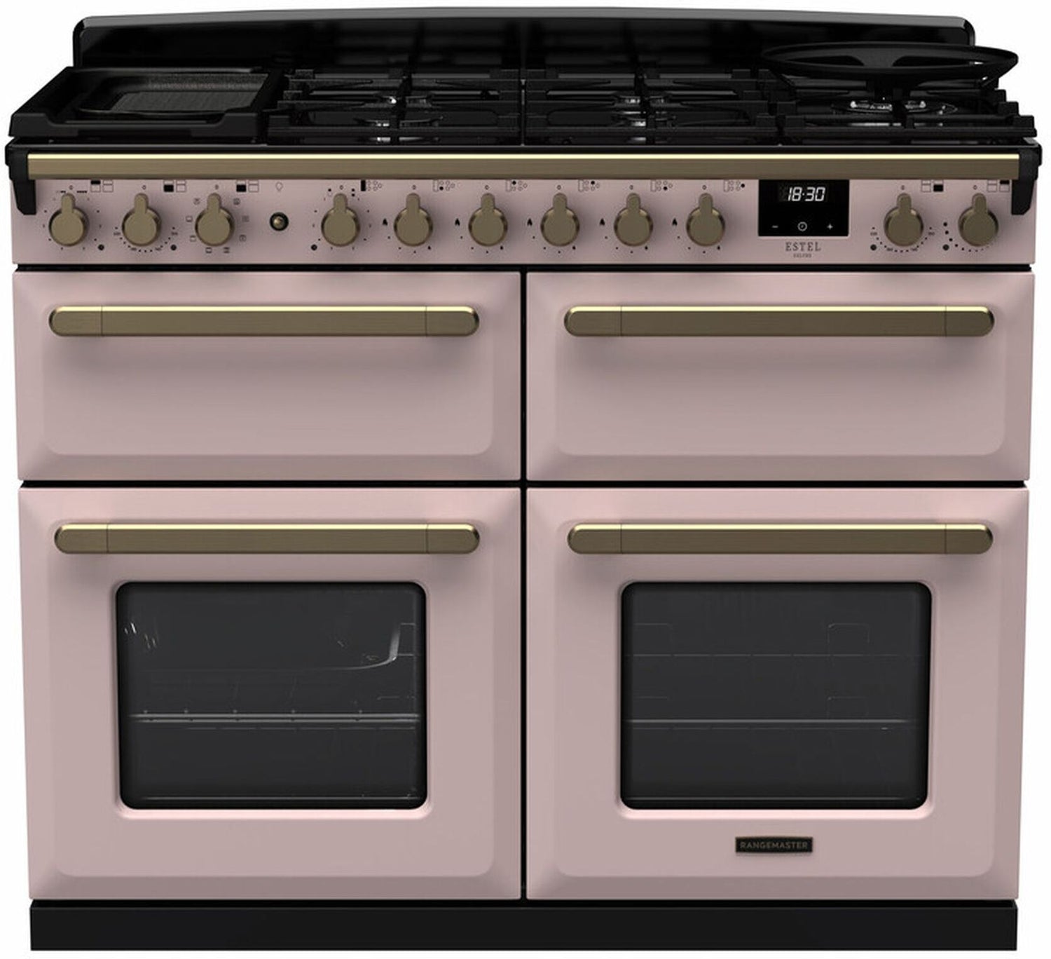 Rangemaster Estel Deluxe BC 110cm Wide Dual Fuel Range Cooker - Pale Pink / Antique Brass
