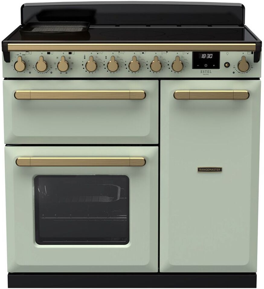 Rangemaster Estel Deluxe 90cm Wide Induction Range Cooker - Mint / Antique Brass