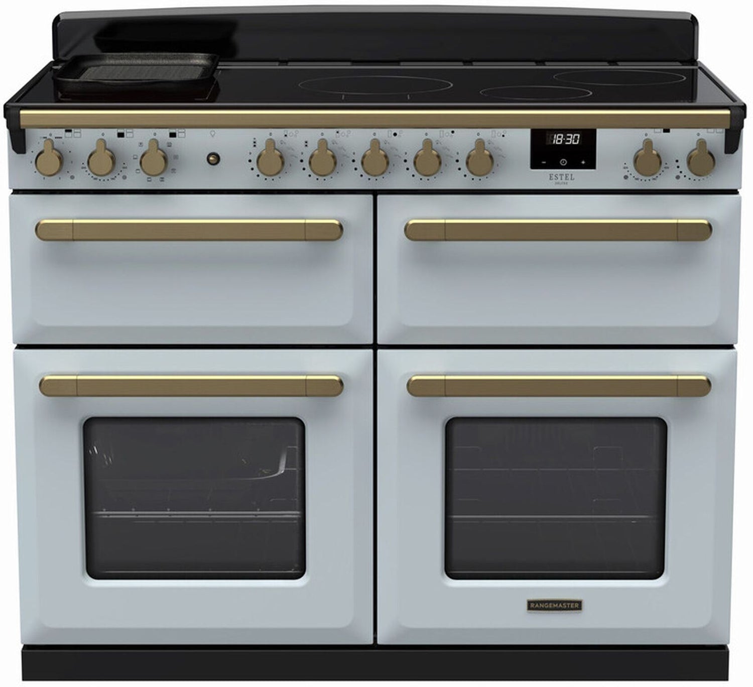 Rangemaster Estel Deluxe BC 110cm Wide Induction Range Cooker - Misty Blue / Antique Brass
