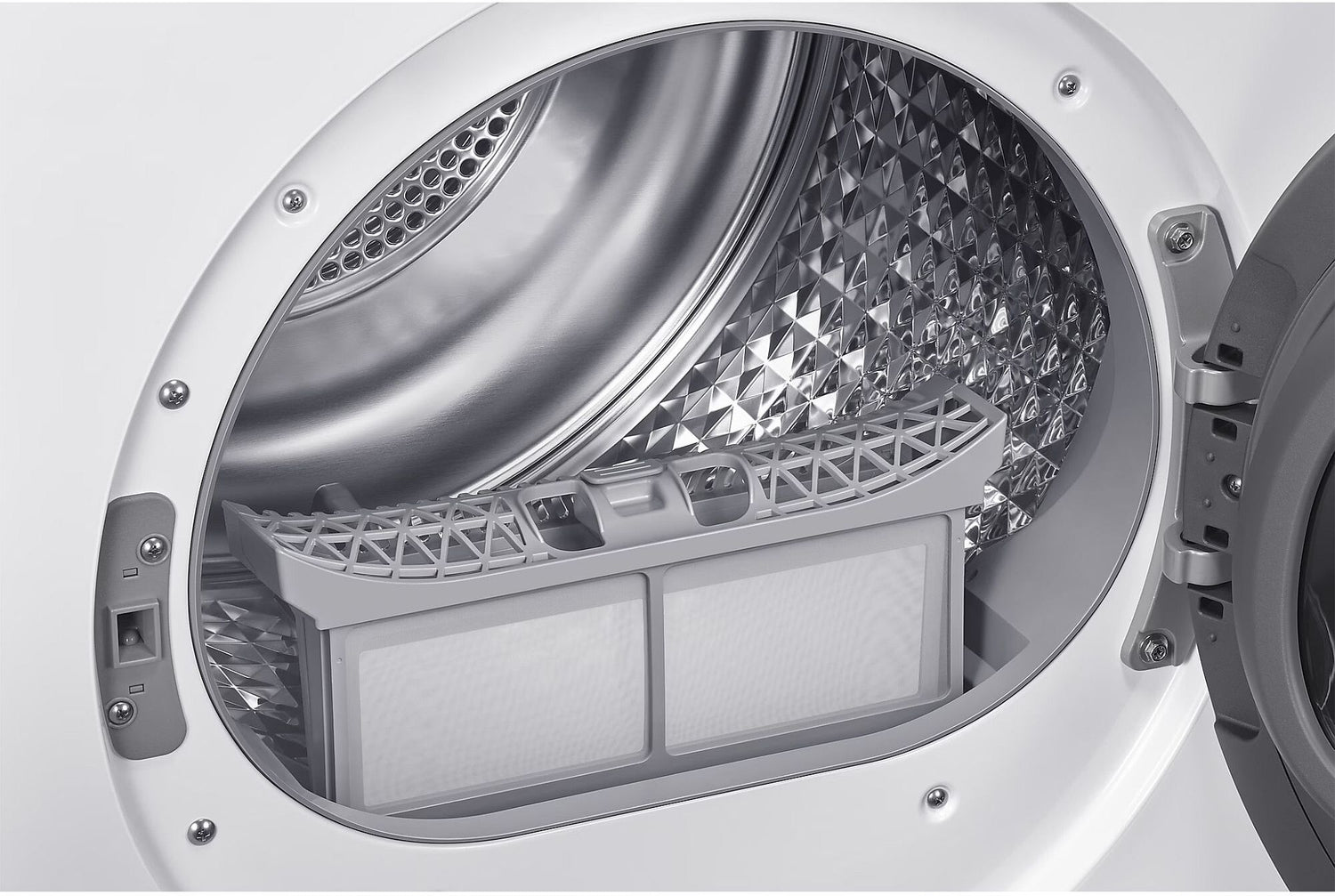 Samsung's SmartThings connectivity enhances the user experience by providing helpful notifications, energy monitoring, and even remote engineer assistance, making this dryer not just an appliance but a smart home device. The LED display and combination of rotary dial and touch controls offer a user-friendly interface, while the stainless steel drum with a diamond design promises durability and efficient drying performance. An interior light illuminates the drum, making it easier to see inside.