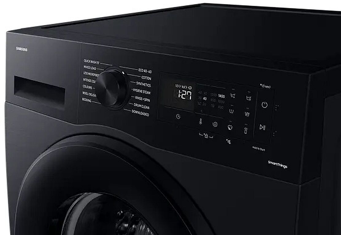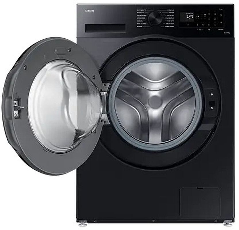 The Samsung WW90CGC04DABEU, a sleek black 9kg washing machine, combines style with efficiency. With its A energy rating, it ensures eco-friendly operation. Its internet connectivity allows remote management via the SmartThings app, enhancing convenience. The machine features 15 diverse wash programmes, catering to various fabric types. Its standout EcoBubble technology ensures effective cleaning at lower temperatures, saving energy. Additionally, the Hygiene Steam function offers a sanitising wash, eliminating 99.99% of bacteria, ideal for sensitive garments. Equipped with a quick wash option and an LED display, the Samsung WW90CGC04DABEU makes laundry tasks simpler and more efficient, blending advanced features with practical functionality.