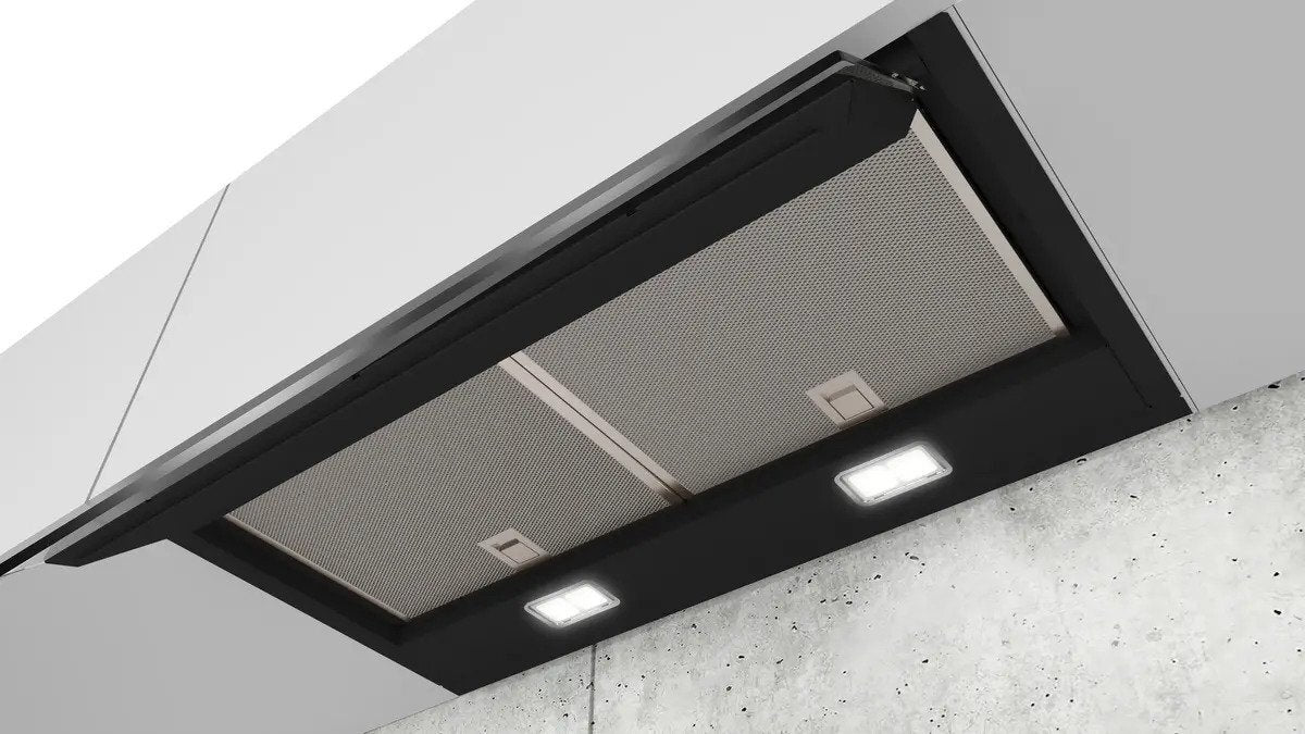 This Siemens integrated hood has a black and glass finish and is controlled by touch controls. With three speeds and a booster power level, this hood has a maximum extraction rate of 749 m3/h. The two LED lights on this hood will help illuminate the cooking surface below. This LJ67BAM60B also features automatic intensive revert after 6 minutes.