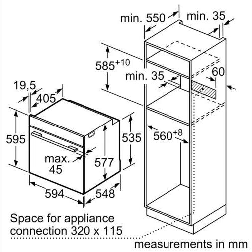 - Cavity Dimensions: (h w d): 585 - 595 mm x 560 - 568 mm x 550 mm