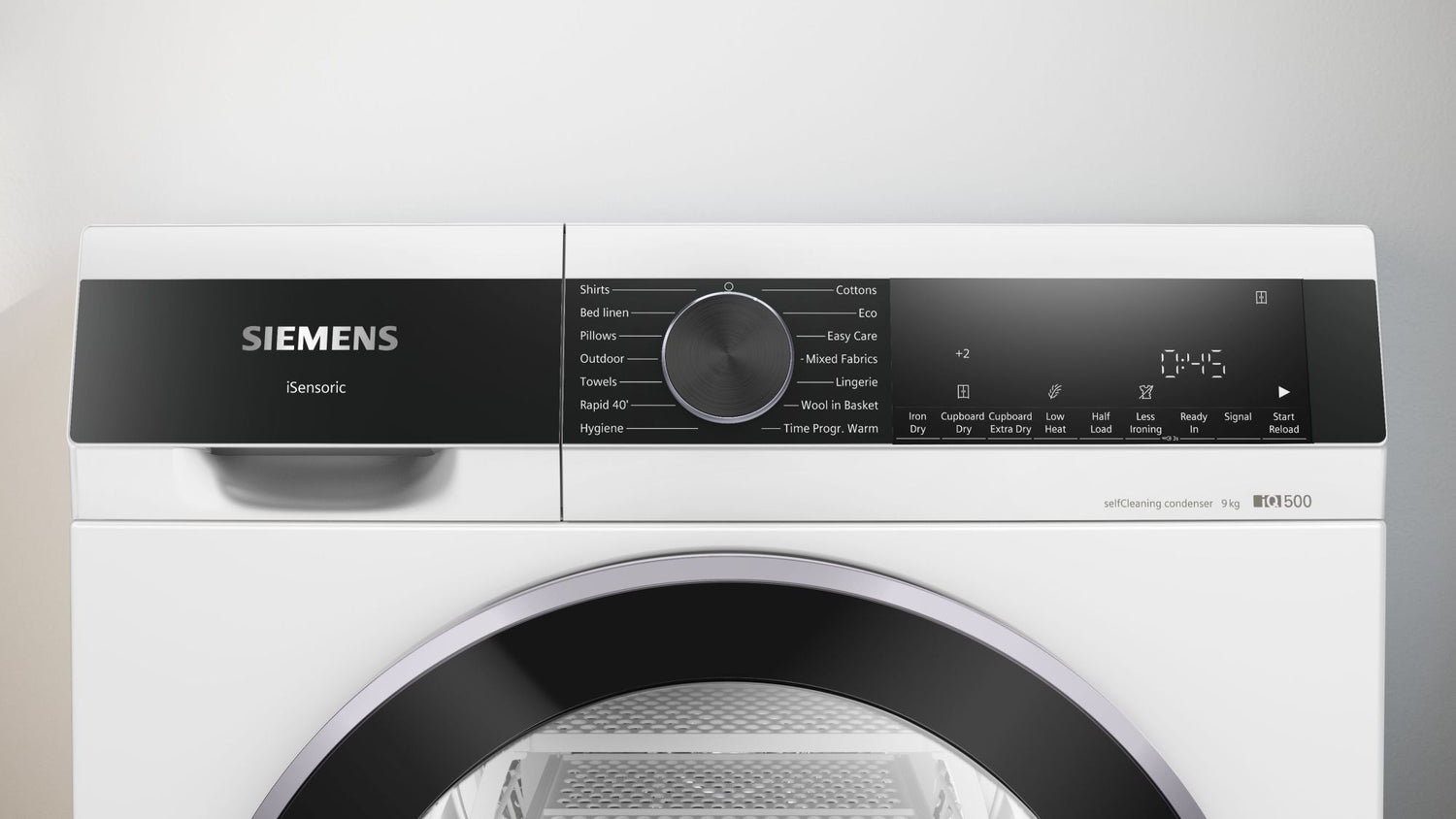 Ease of use is at the forefront of Siemens’ design. The large LED display, paired with rotary dial and touch controls, provides intuitive operation and shows key information such as programme progress and time remaining. Automatic load recognition helps optimise cycle time and energy use depending on the size of the load, while the delay start function allows you to set the dryer to run at a time that suits your schedule. For households with young children, the child lock ensures that settings cannot be accidentally adjusted during operation, and the clear acoustic signal – which can be turned off – alerts you when a cycle has finished.