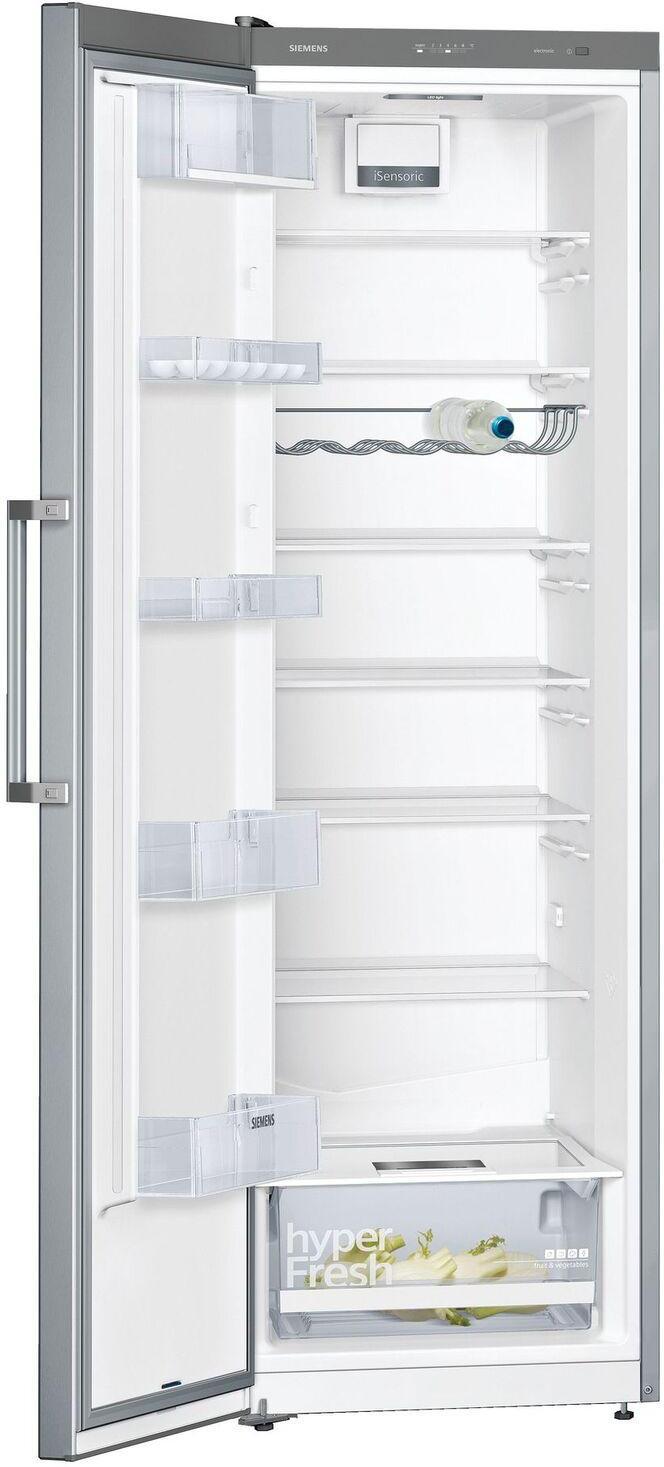 Keep fruit and vegetables fresher for longer with this iQ300 larder fridge by Bosch. Thanks to the hyperFresh drawer and humidity slider, your fruit and vegetables will stay fresh and crisp for longer. With the softStart LED, illuminating the interior of the fridge brilliantly, loading and unloading the fridge has never easier. Press the superCooling button to reduce the internal temperature of the KS36VVIEPG for a set time, to quickly cool down fresh food items.