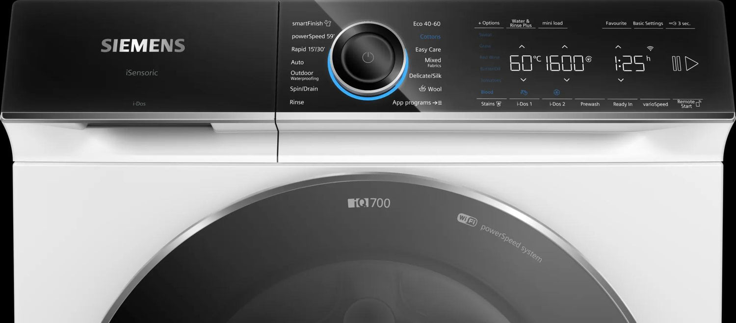 This intelligent appliance is internet-connected through HomeConnect, offering the convenience of remote control and diagnostics. It's exceptionally quiet, with a spin noise level of just 72 dB, ensuring minimal disturbance. The Siemens iQ700 WG56B2A1GB is designed with a range of 14 wash programmes, catering to various fabric types and washing needs, including a dedicated delicates programme and an Eco 40-60 option. The innovative Auto, Easy Care, Cottons, and Mixed Fabrics settings further enhance its versatility.