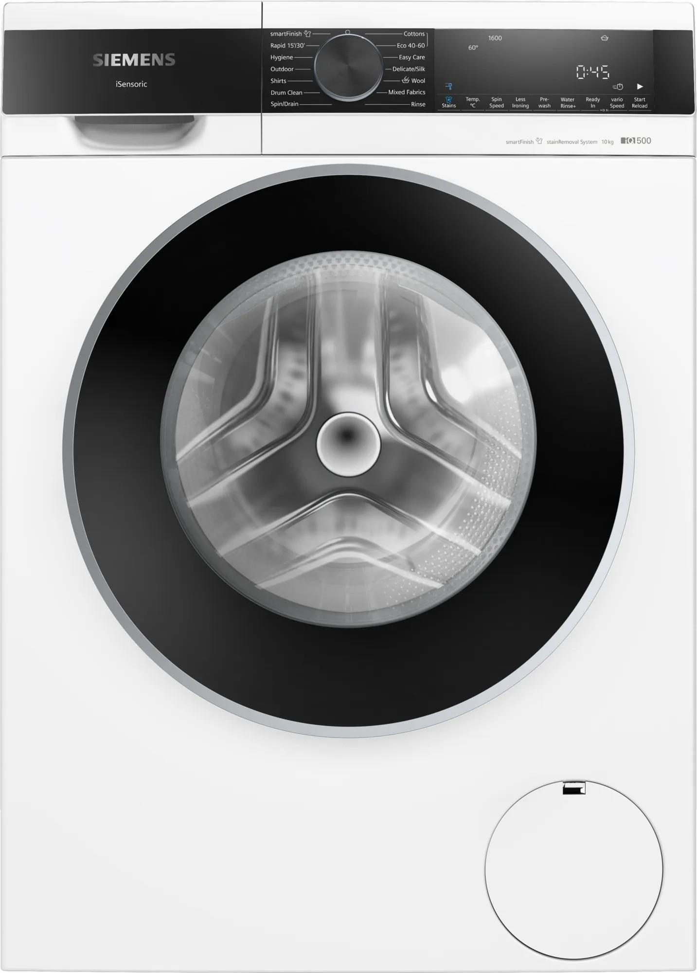 The Siemens WG56G2Z0GB features a spacious 10 kg load capacity and an impressive 1600 rpm spin speed, ensuring your laundry is not only clean but also nearly dry when it comes out. The front-loading design and pristine white colour complement any home decor, and with its freestanding setup, it offers versatile installation options. The dimensions and modern build allow it to fit neatly under counters or as a standalone unit.