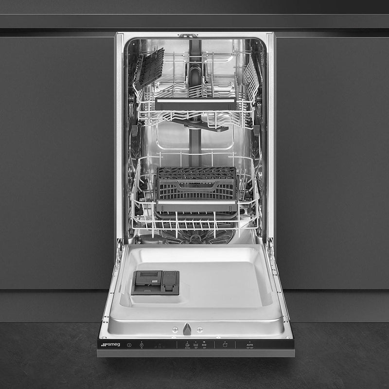 Most Smeg dishwashers have Total aquastop, an electronic device fitted to the water intake hose and the base of the machine, which monitors water levels in the machine, detects leaks in the hose and switches off the water supply immediately directly from the source when necessary, preventing water spillages onto the floor.