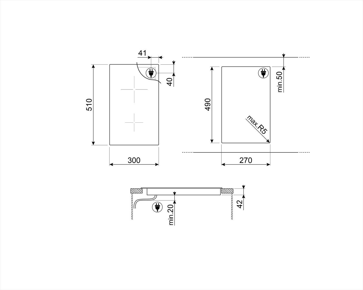 Installation is a breeze with the Smeg Universal 30cm Ceramic Domino Hob, which fits perfectly into a 490 x 270 mm cavity. The 1.30 m cord length provides ample flexibility for placement within your kitchen setup. As an electric appliance with a power requirement of 2.9 kW, it ensures efficient and consistent cooking performance.