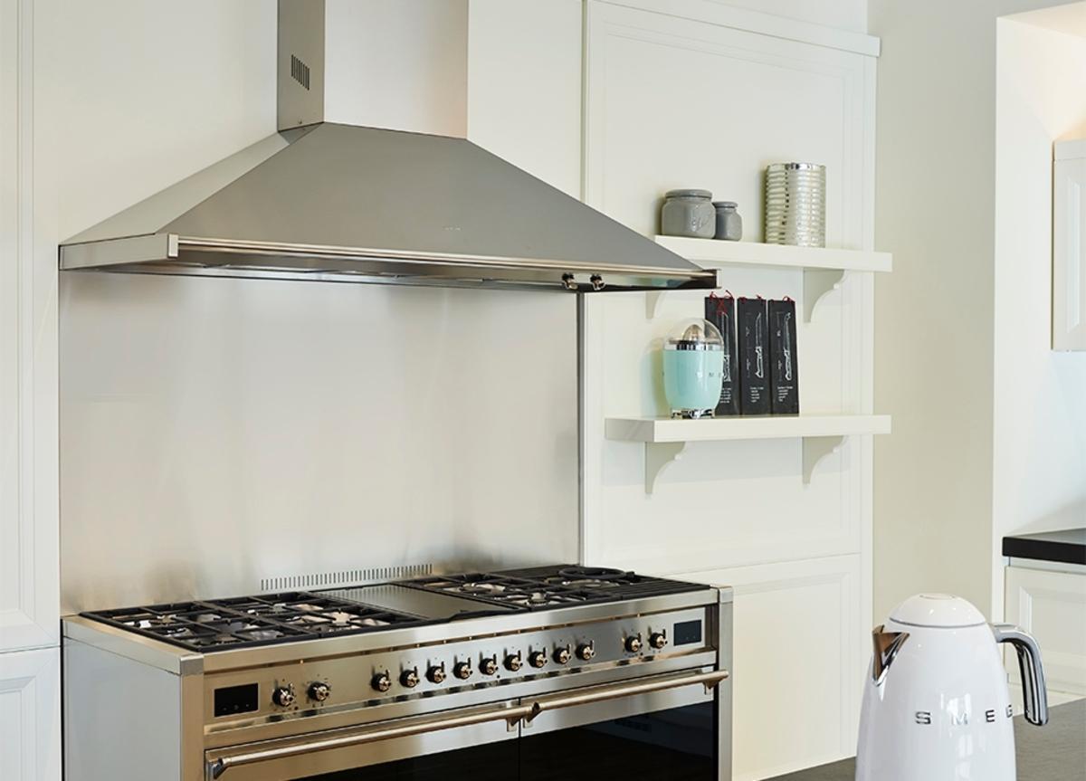 Most Smeg hoods offer the choice of ducting or re-circulating, so you can choose your preferred method. Ducting out extracts cooking fumes and expels them outside, using a vent kit (available as an optional accessory). The diameter of the ducting hose should match the vent outlet of the hood, the diameter of the vent outlet on the KD150HXE is 150mm.