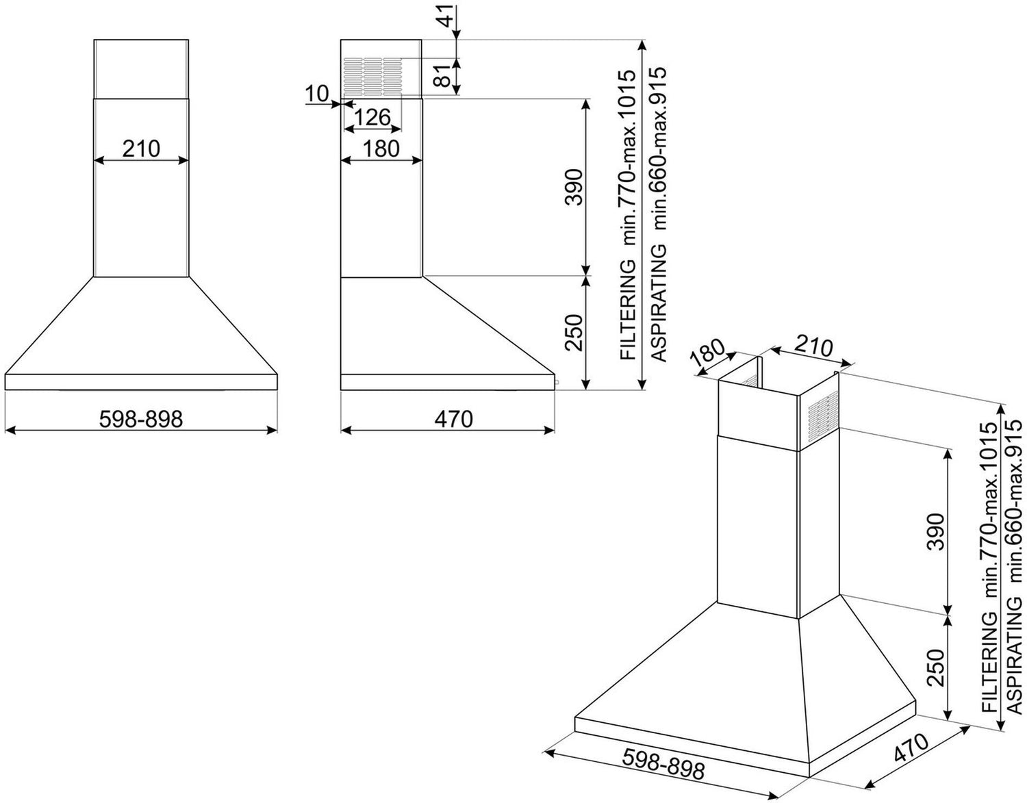 - Range: Smeg Universal Chimney Hood