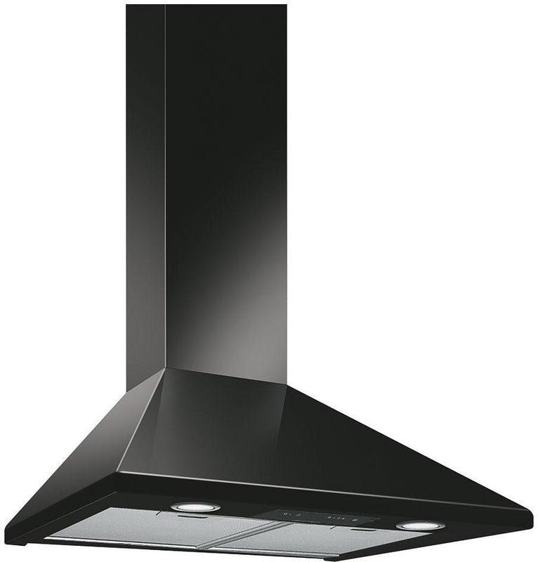 This attractive black 60cm chimney hood has three powerful extraction speeds, which work effectively to eliminate cooking odours, vapour and grease from the air while you cook. Two energy-efficient LED lights provide useful task lighting over your hob. The two aluminium grease filters can be easily removed and washed in a dishwasher, to ensure ongoing high performance. It can also be used in recirculation mode with an optional charcoal filter.