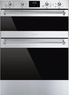 Smeg 60cm Classic Double Under Counter Oven, Stainless Steel & Eclipse Glass