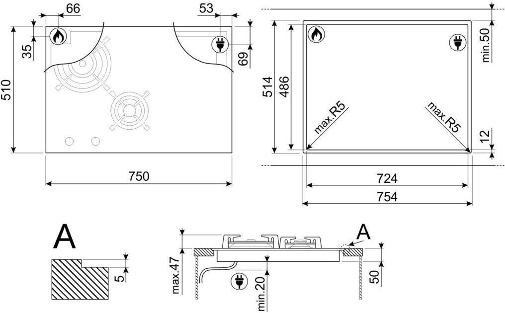 Smeg 75cm Mixed Fuel Hob With 2 Gas Burners And 1 Induction MultiZone