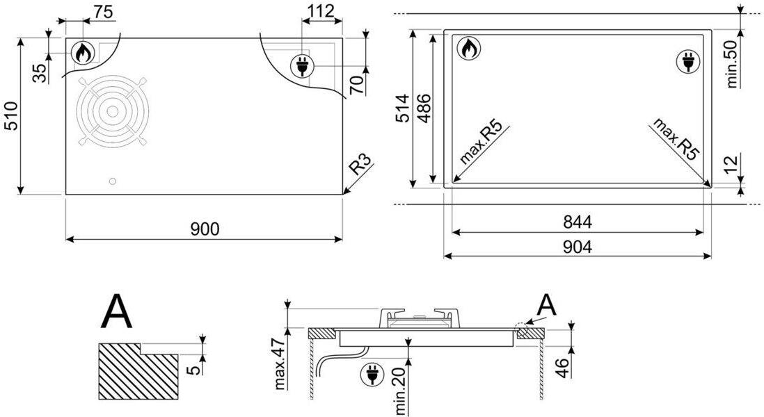 - Standard cut out: 482-486x844-848 mm