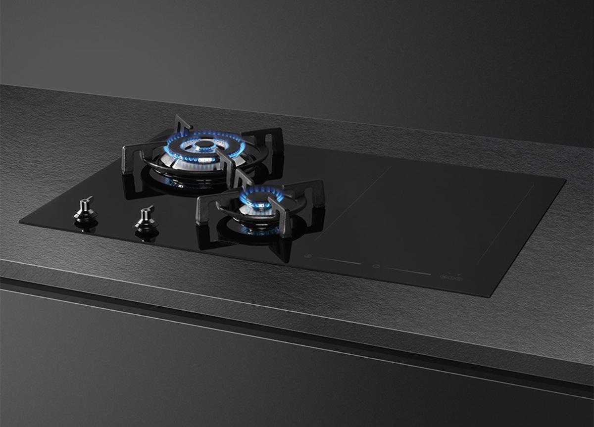 Both the 90cm and 75cm widths come with an ultra-rapid gas burner and durable cast iron pan stands, accompanied by induction zones. The induction zones can be used separately or together as a single large space.