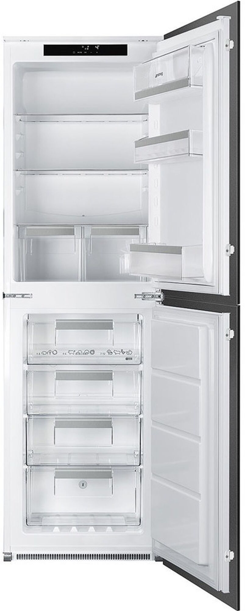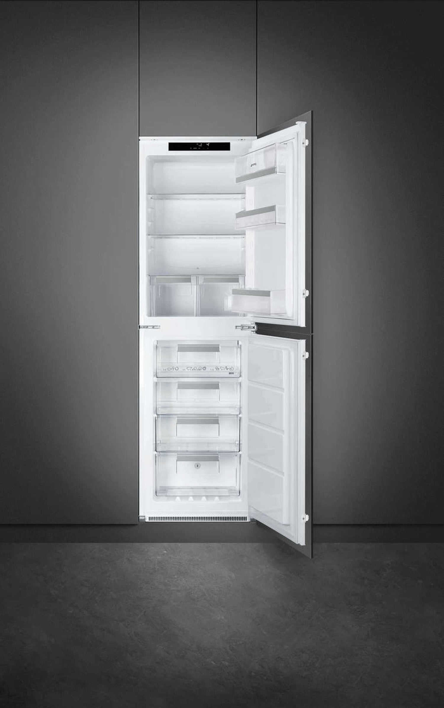 Overall, the Smeg UKC8174NE Universal Fully Integrated Frost Free Fridge Freezer is a top-tier appliance that combines modern design with advanced technology. Its generous storage capacity, convenient features, and energy-efficient operation make it an excellent choice for any household looking to upgrade their kitchen with a reliable and stylish fridge freezer.