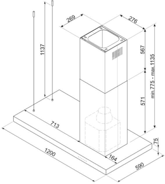 Smeg Universal 120cm Island Hood - Stainless Steel