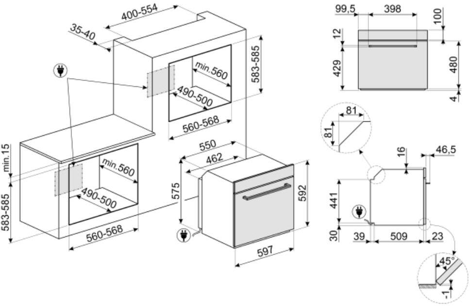 - Cavity Dimensions: (h w d): 583 x 554 x560 mm