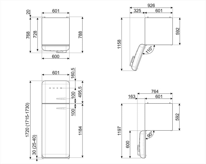 When positioning the FAB30LWH5UK appliance adjacent to a wall or kitchen unit a gap of 175mm must be left on the hinged side of the product to allow the door to open.