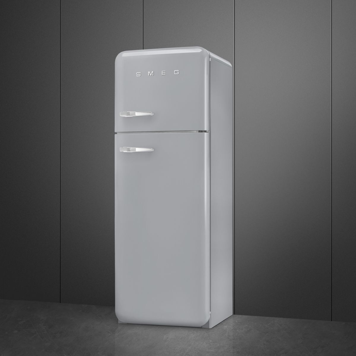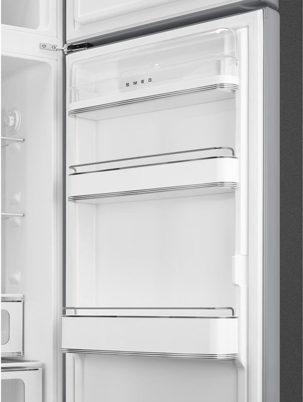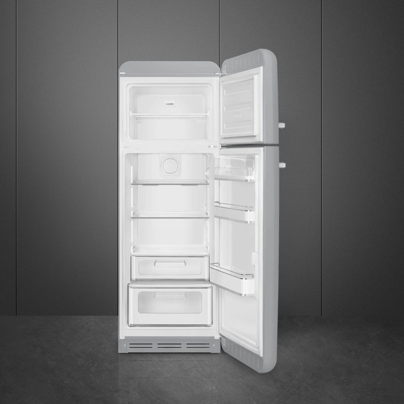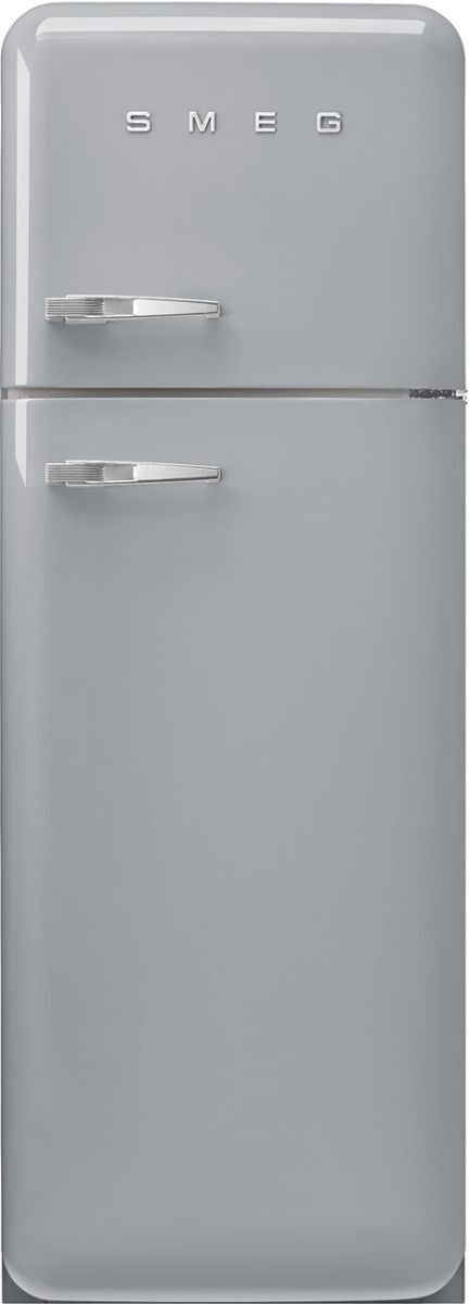 Smeg 60cm Wide 50s Style Right Hand Hinge Freezer Over Fridge - Silver
