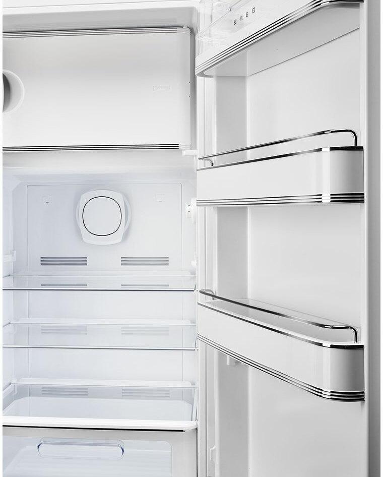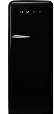 This right-hinged, black, 244-litre capacity Smeg fridge with an icebox combines a retro 1950’s aesthetic with an excellent energy-efficiency rating, which will help keep your power bills low. Three adjustable glass shelves, a range of door compartments and a fruit and vegetable container provide plenty of storage, while a Life Plus 0°C Zone offers optimal conditions for perishable food. What’s more, the four star 26-litre icebox in the top of the FAB28rBL5UK allows safe storage of frozen food.