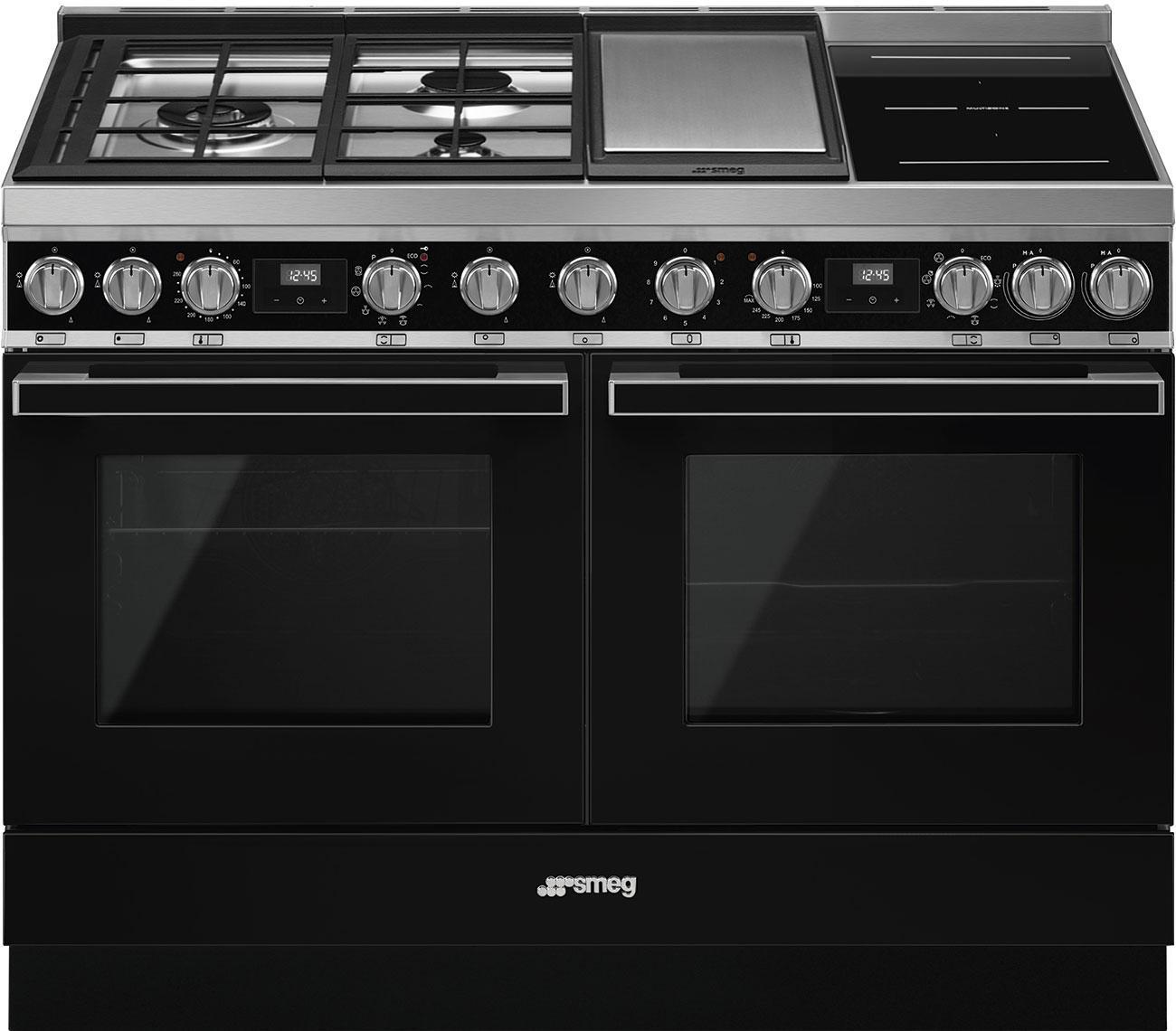 Smeg 120cm "Portofino" Dual Cavity Cooker With Mixed Fuel Hob, Black