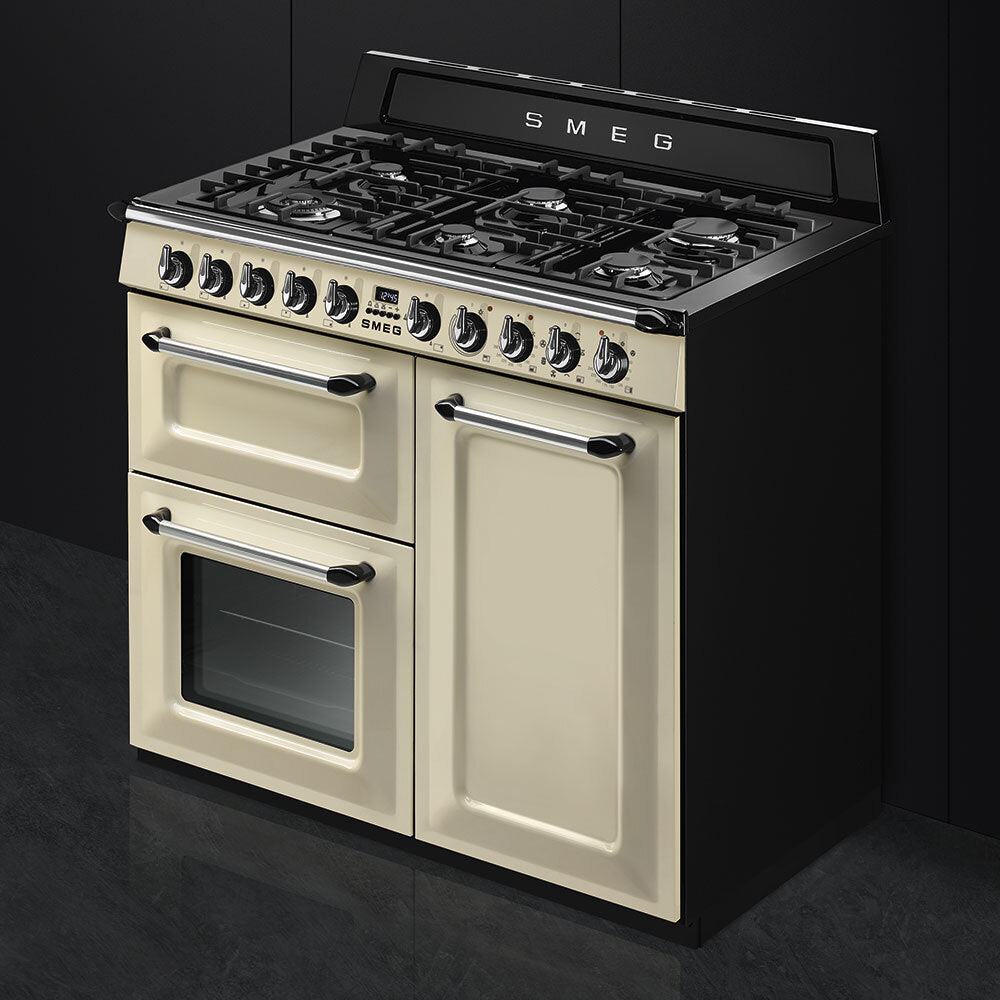 Smeg 100cm "Victoria" Traditional Dual Fuel 3 Cavity Cooker With Gas Hob, Cream