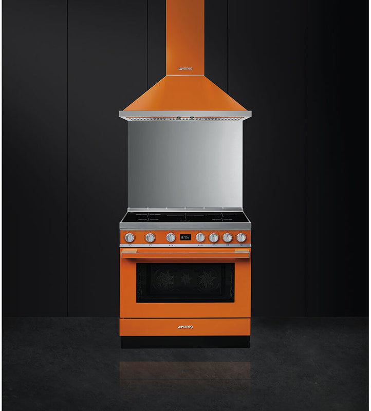 With a spacious 115 litre capacity, 12 function oven and five powerful induction zones, this orange cooker, part of the Portofino aesthetic collection, is ideally suited to all your culinary needs. The 20 automatic programmes make it easy to try something new, with Smeg's Circulaire heat distribution technology ensuring fast, even cooking results. There's also a closed door grill which can be used for delicious rotisserie meat, and two pyrolytic high temperature cleaning functions.