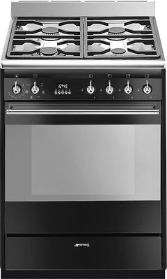 Smeg 60cm Concert Single Cavity Dual Fuel Cooker, Gloss Black