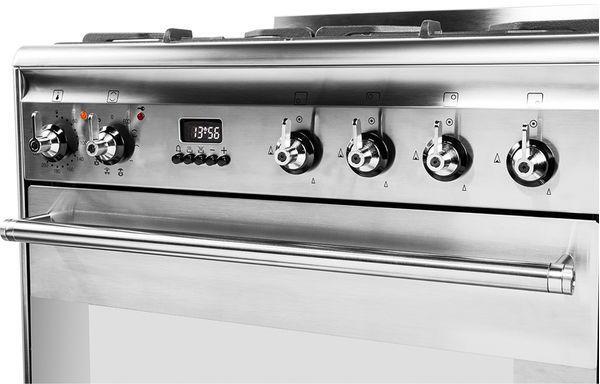 The Smeg "Concert" Cooker's multifunction oven offers a diverse range of 10 functions, from the innovative Circulaire mode for even heat distribution to the eco-friendly setting that's gentle on the environment. The Quadruple Glazed All Removable Cooler Door and removable inner door glasses make cleaning a breeze, ensuring your cooker looks as good as new after every use. The closed-door grilling feature ensures your culinary creations are cooked to perfection, while the storage compartment beneath the oven provides a convenient solution for your kitchen essentials.